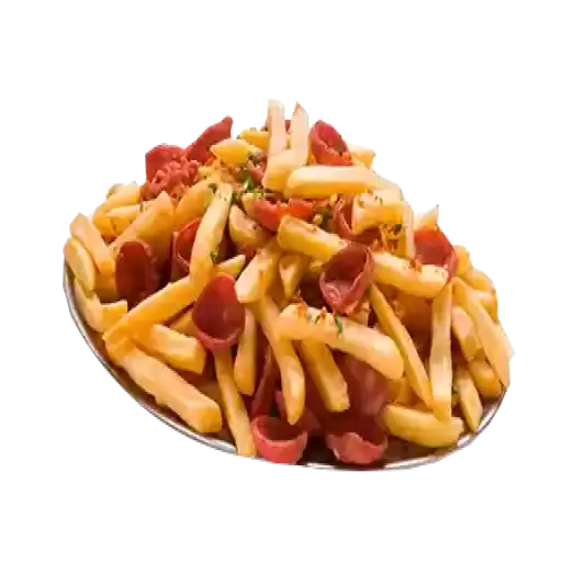 Batata com bacon, cheddar, calabresa.